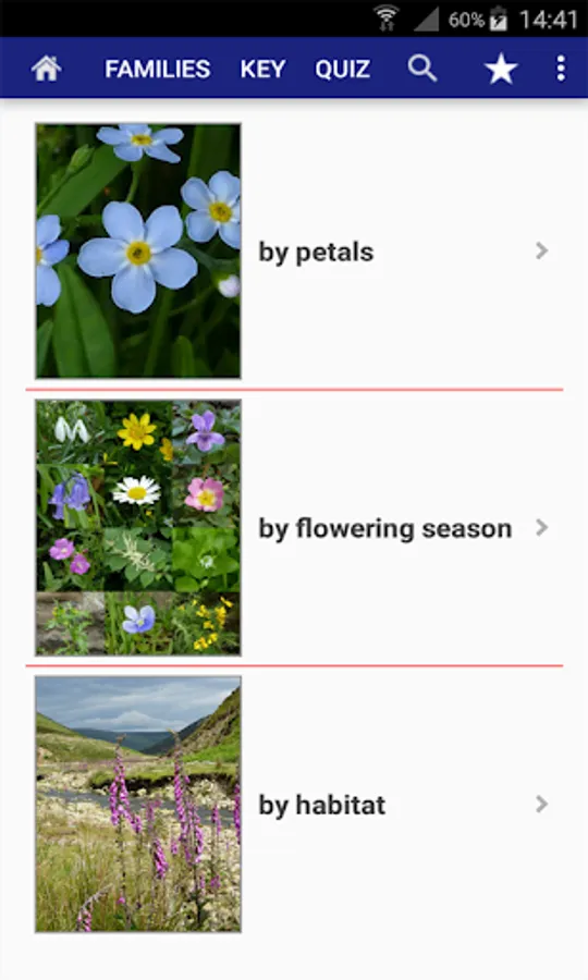 There are 3 photographic keys to petals, flowering season, and habitat to help you to identify wild flowers in the field, and you can test and improve your knowledge with the interactive quiz!