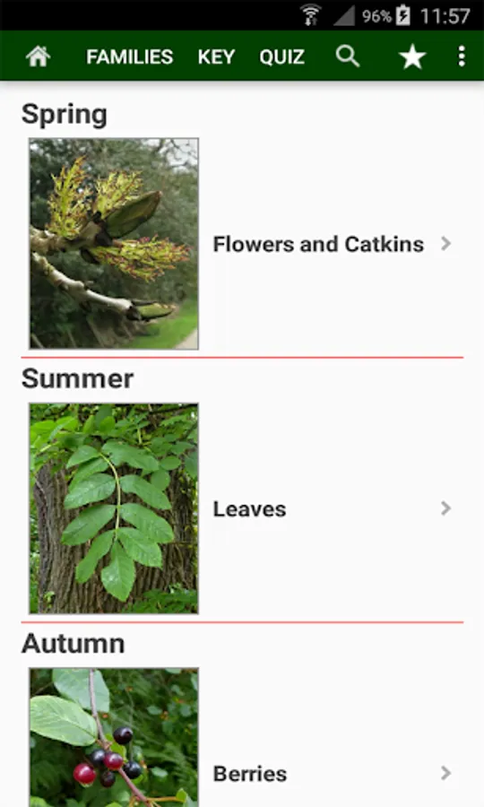 There is a photographic key to Spring, Summer, Autumn and Winter features to help you to identify trees in the field, and you can test and improve your knowledge with the interactive quiz!