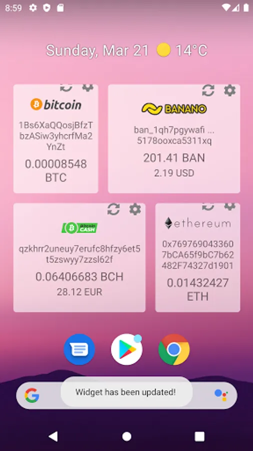 Cryptocurrencies supported: Bitcoin BTC, Banano BAN, Bitcoin Cash BCH, Ethereum ETH, Litecoin LTC