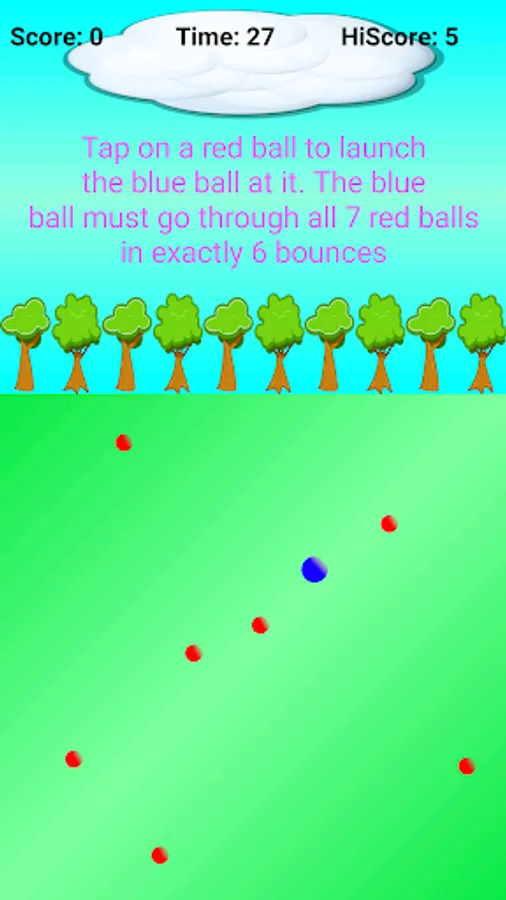 Use the blue ball to strike through all 7 red balls in one go!