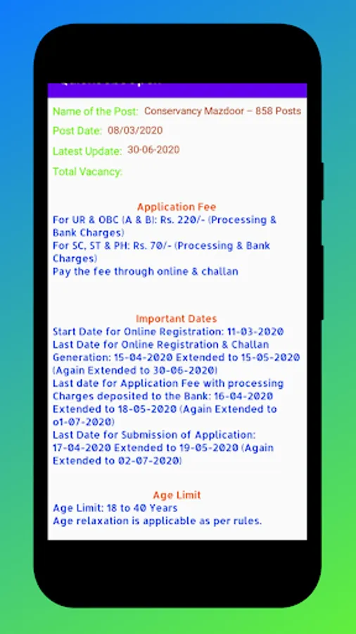 While all efforts have been made to make the Information available on this App as Authentic as possible. We are not responsible for any loss to anybody or anything caused by any Shortcoming, Defect or Inaccuracy of the Information on this Website. Please check Official Government Website twice before applying for any job.