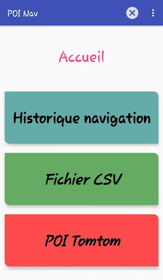 Poi Nav is an application for reading a Tomtom file (.ov2) or a CSV file. The application works completely offline, the data is imported by the user, and is stored in the application.