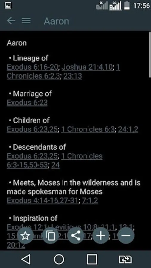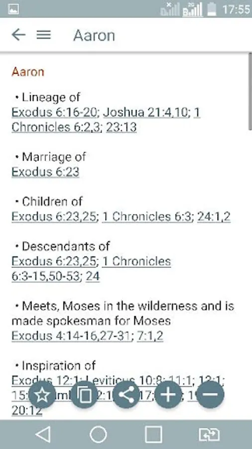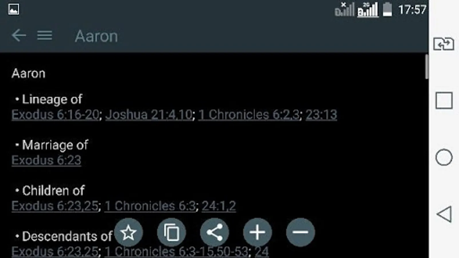 You can add to favorites most liked bible words, copy all and any part of the text, share the text, look bible verses (KJV) by clicking on them, increase/descrease font size. I hope you find this topical bible concordance convenient and useful for studying Holy Bible.