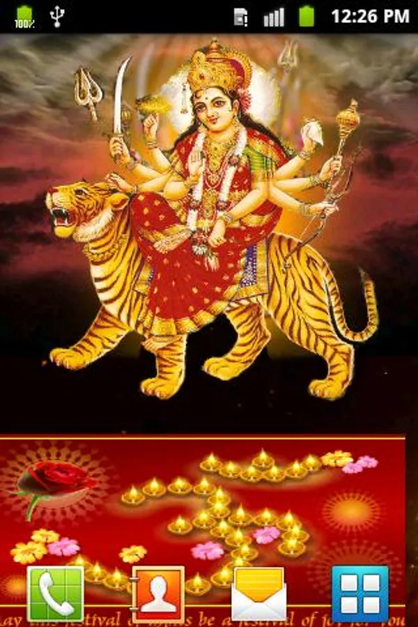 Note: This Durga Aarati & cahlisa is live wallpaper.To activate this, long press on a home , select Wallpapers -> Live Wallpapers -> Durga Aarati &cahlisa.