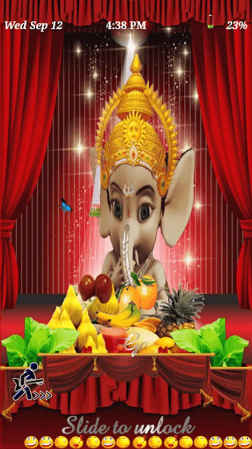 Eating Gana live wallpaper & Lock Screen.Animation of Eating Gana(ganapathi) for your mobile screen and Eating sound,different types background option for Ganapati.