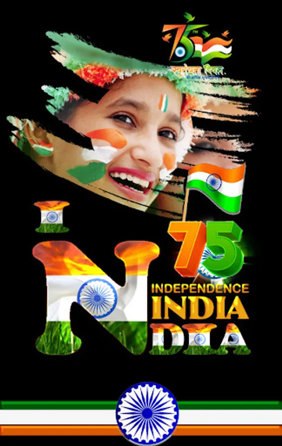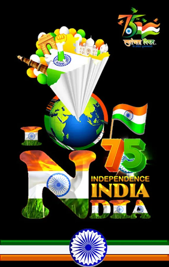 India Flag Name Art & live Wallpaper Themes & 75th India Independence day Specials Greeting Cards , Photo Frames & Stickers for Azadi ka Amrit Mahotsav festival. India Flag Theme live Wallpaper with balloons fall.