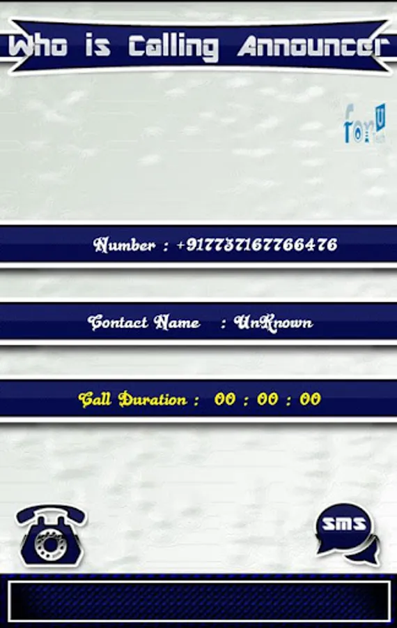 Who's calling ? Announcer for announce caller name while incoming call and also display user talk-time Call duration window. Announce the name of the caller for incoming phone calls.
