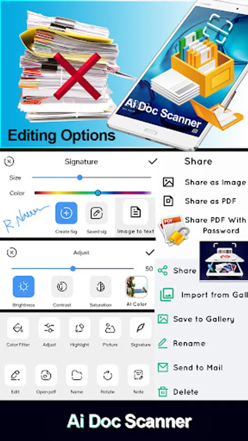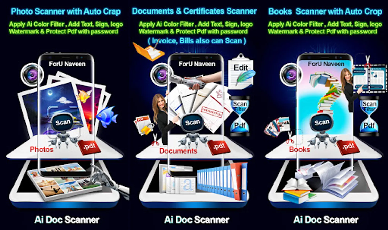 Ai Color Filter : After Scanning you apply or change color filter, the app has various auto-correcting functions, such as increasing the brightness and filtering the image for a better and higher quality output.
