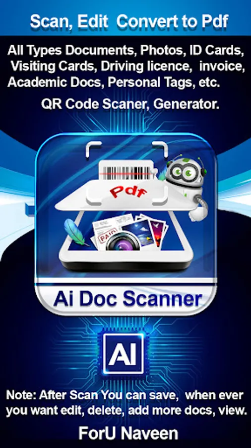 Ai DOC Scanner - PDF Maker, QR Code Scanner - Generator & OCR Image to Text Extractor . Doc Scanner will turn your device into a powerful portable scanner that recognizes text automatically (OCR) & help you become more productive in your work and daily life.