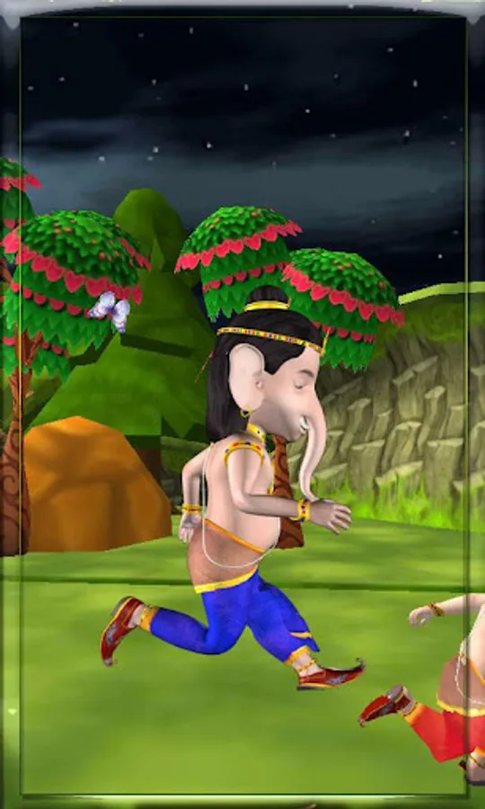 * Junior Ganesh Laddu Catch Running animation, having with Traditional Wooden umbrella and water pot while playing.