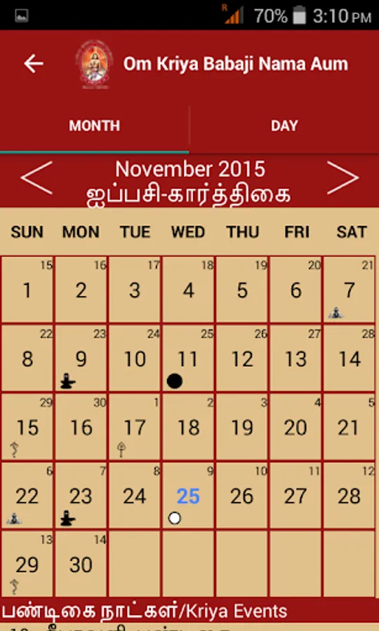 Kriya Yoga Calendar, a handy tool for Kriya Yoga sadhaks all over the world, which contains the following, apart from the general almanac details.