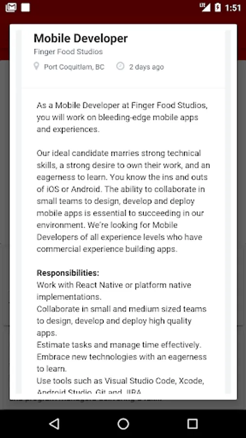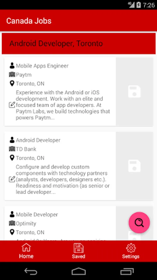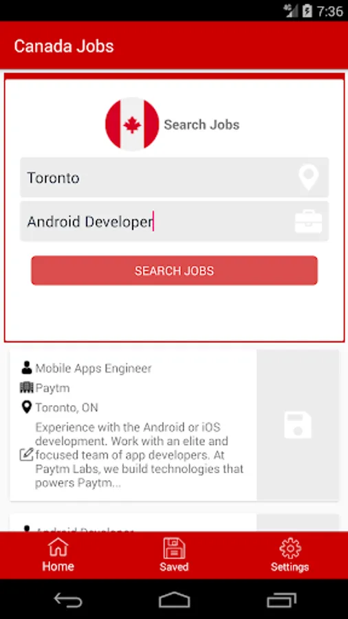 "Canada Job Search" app enables you to search for jobs from a variety of categories like software development, sales, marketing, security professional and many more. Search and apply for your favourite job openings using a quick and user friendly user interface.