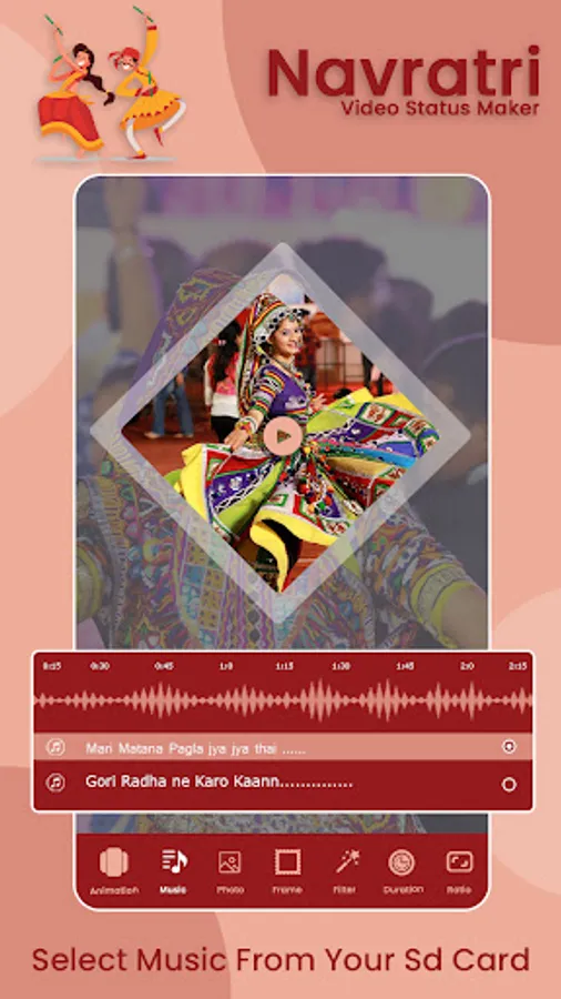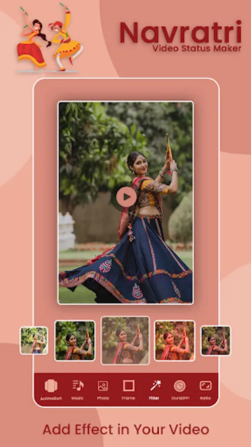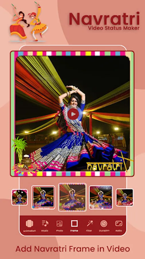 * Set Pre loaded Navratri Photos to your video and create awesome Navratri Video.