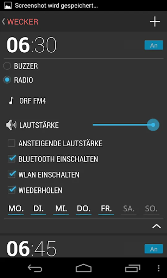 At 7 o'clock your radio will start playing until at 07:30 am the buzzer kicks in. If now you decide to stay in bed a little longer, you just snooze the buzzer, with the effect of the radio restarting to play.