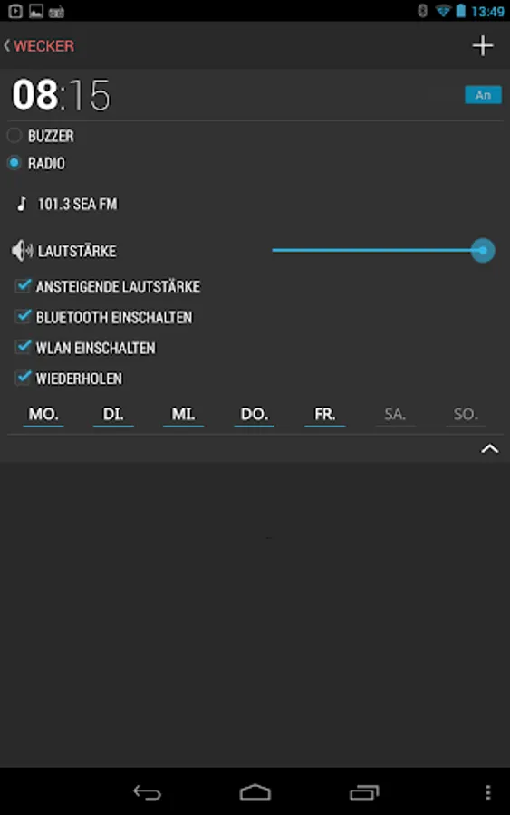 This radio alarm aka radio alarm clock allows you to have a good sleep until you wake up to the sound you like. Choose the radio station you like as your alarm sound and ensure your akeup through another alarm, one with a buzzer, a few minutes later. Tune in again to your radio alarm by snoozing the buzzer alarm.
