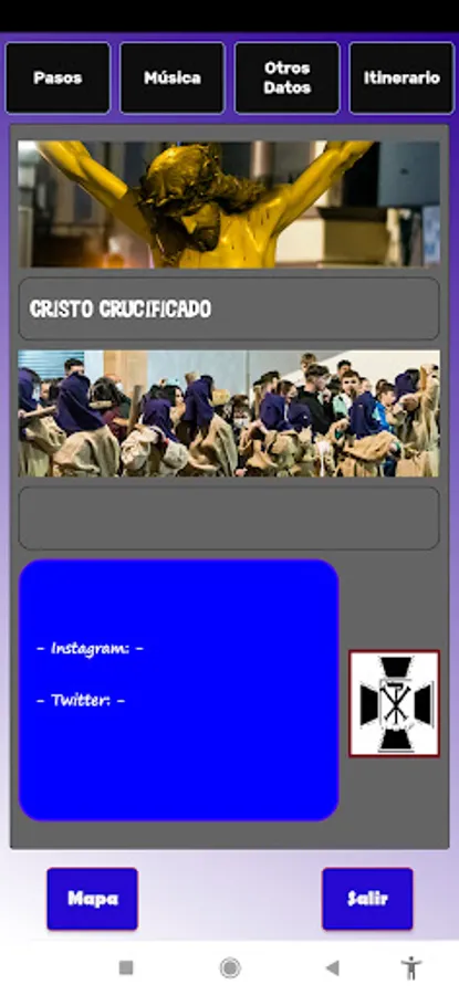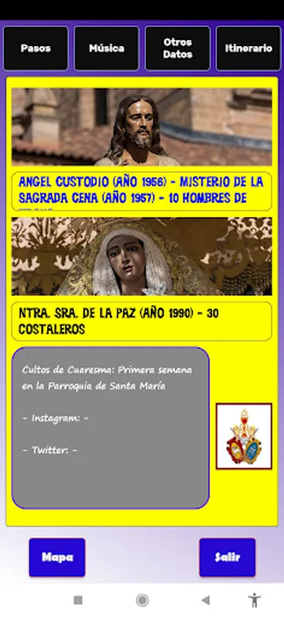 Application to consult the data of the Brotherhoods of Linares, with itineraries and brotherhood dictionary.