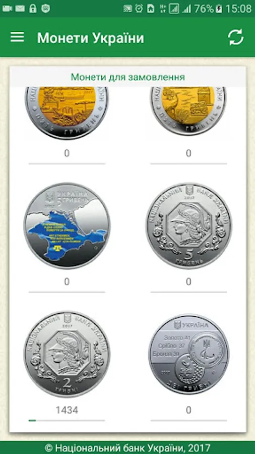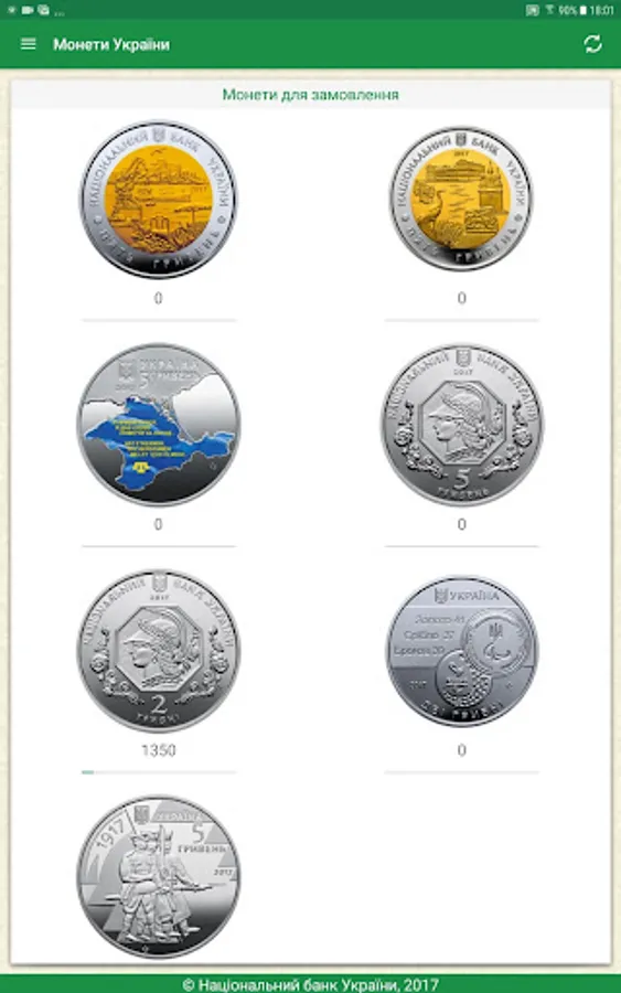 In addition, the application allows you to quickly track remnants of coins at online-ordering the National Bank of Ukraine in terms of regions.