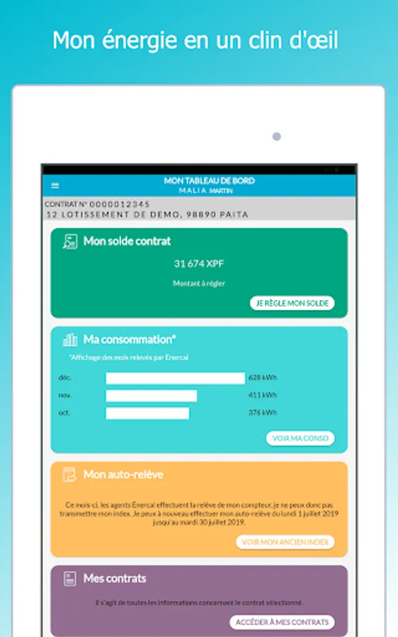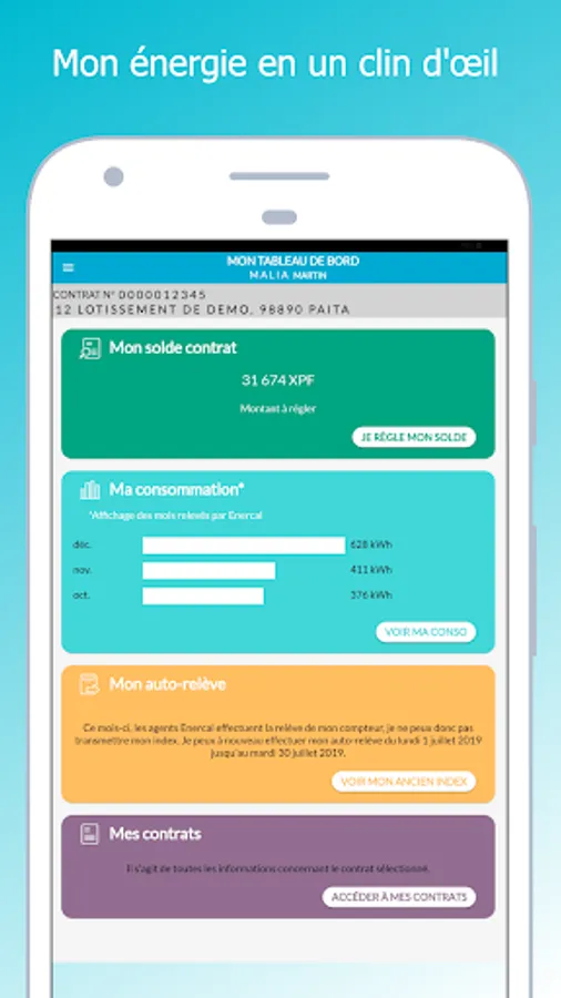 - View my power usage history (over the last 24 months) in kWh & XPF;