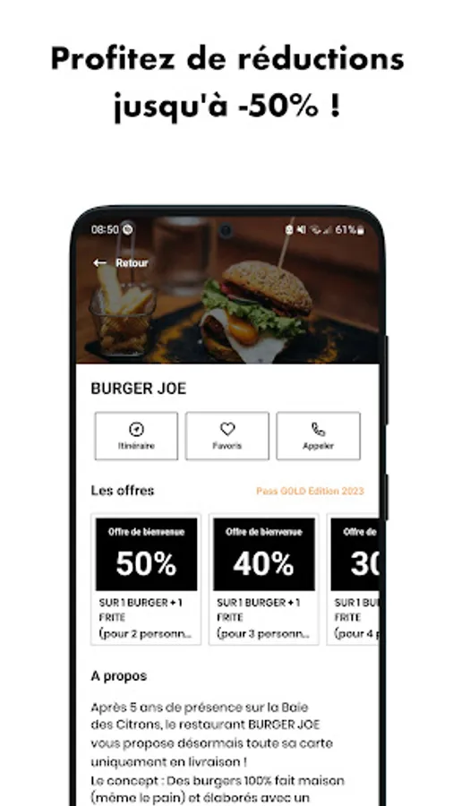 Download the application on your smartphone to take advantage of the best discount offers specially negotiated for you.
