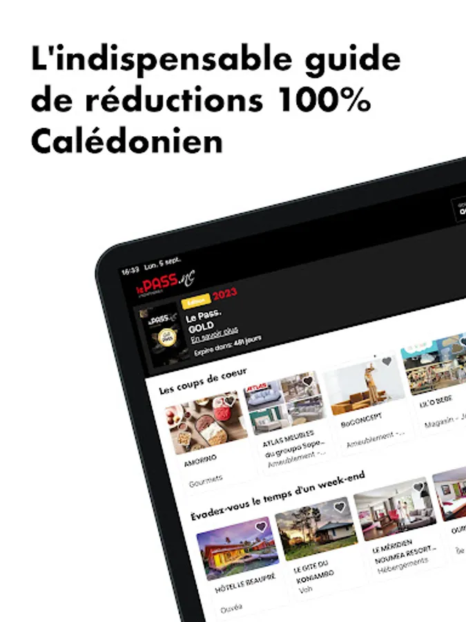- The GOLD PASS: +420 brands / + 800 reductions / discounts of up to -60% in New Caledonia, Vanuatu, Polynesia, Australia and Wallis.
