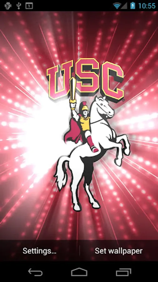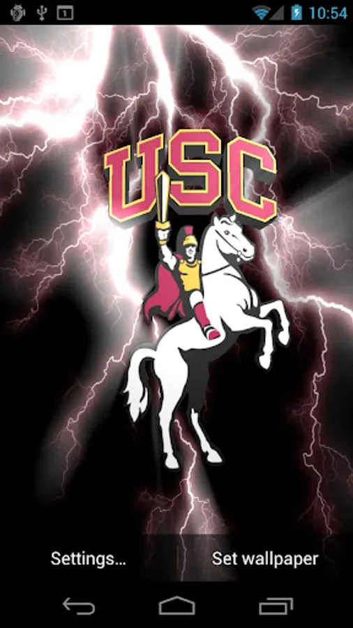 BOLD, SPECTACULAR, CUTTING EDGE designs for your favorite college team, from lightning to light rays, from brush metal to flames and even flowers for the ladies. The lightning background will flash lighting strikes when you tap the screen. Show your true school colors with compelling official graphics. USC has 8 incredible backgrounds.