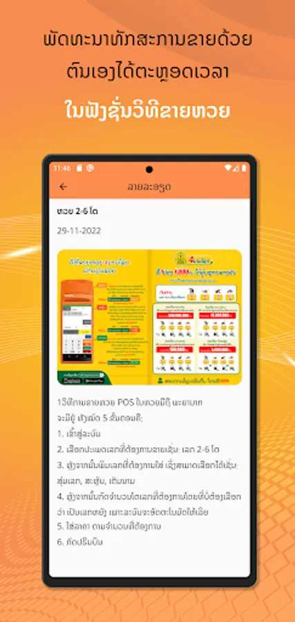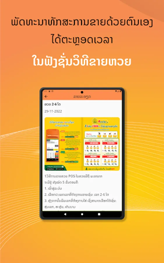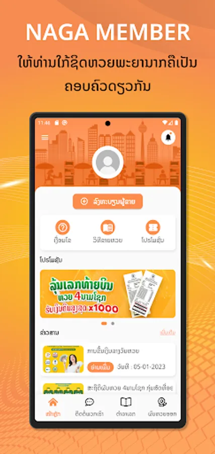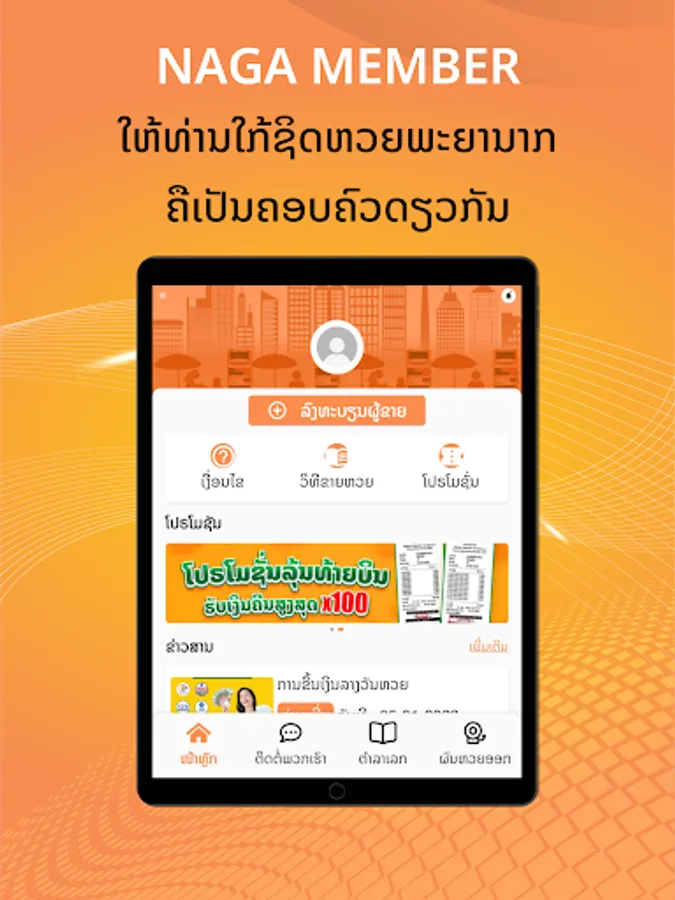 Naga Member is an app created by Huay Phayanak a branch of Lao Lottery, aimed to serve our lottery agents nationwide in Laos, to have easy access to various lottery information such as updates, announcements, promotions... Additionally, Naga Member has many functions, for example, showing the instructions on how to sell lottery, checking seller points and bonuses, giving feedback, contacting customer service, checking lottery results, and locating claim centers.