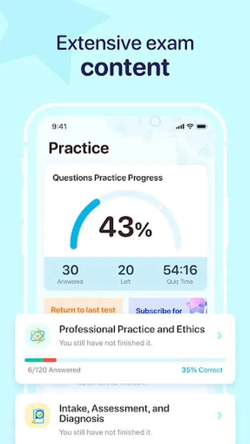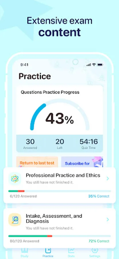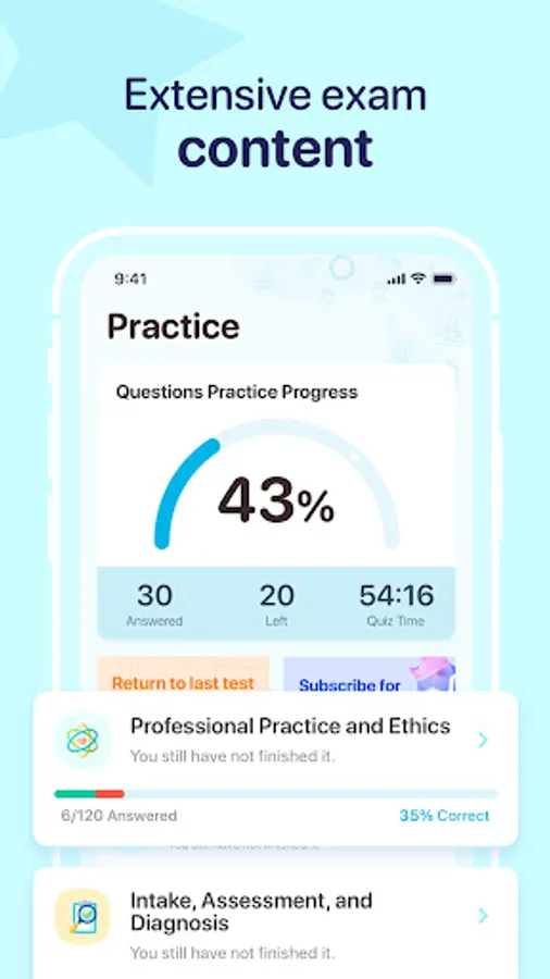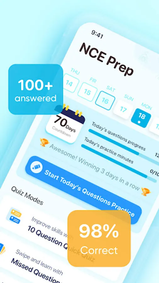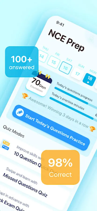 The most important part of passing the NCE exam is to keep practicing and not lose confidence in the exam. You will find that each time you practice on NCE Prep 2023, your knowledge of the exam increases, thus increasing your certainty of passing the exam.