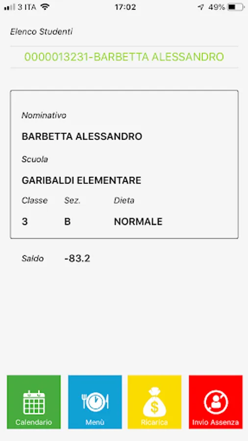 Companion app to view the balances relating to the services used, the attendance of the students, the daily canteen menus.