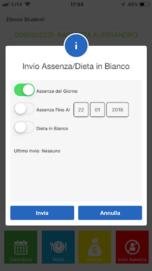 Through the app it is also possible to communicate the absence or any blank deta of the pupil.
