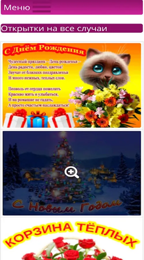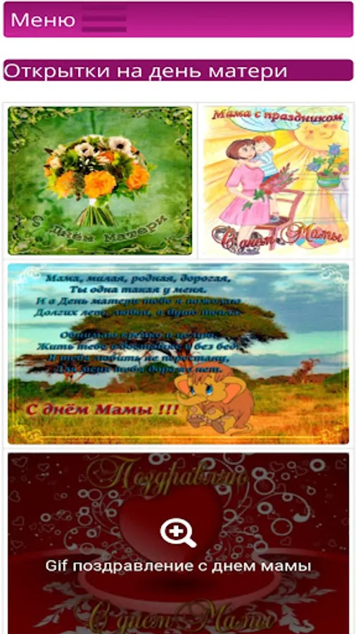 Greeting gif cards for all occasions. Our congratulations will help you congratulate your relatives, friends and relatives for any occasion. In our application gif cards you will find a lot of cards for congratulations. The congratulatory app “Gif postcards for all occasions” is a great way to please your loved one. And give him a holiday card. Also here you can find gifs of greeting cards with wishes for every day. For example, wishes with good morning, good day, good night and a lot of other wishes.
