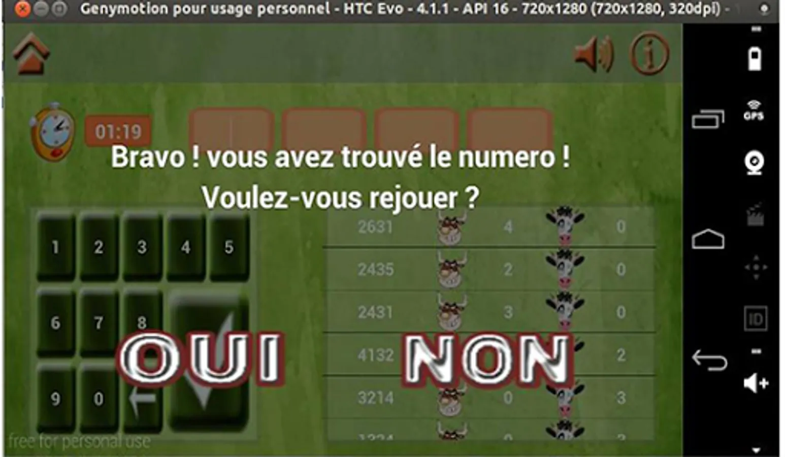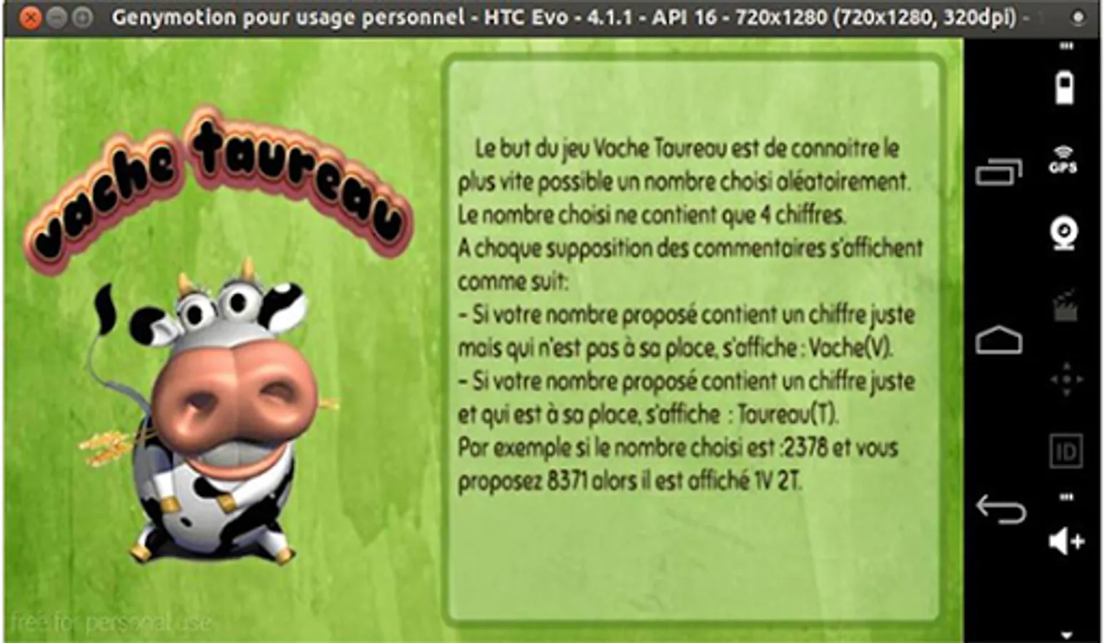 The goal of the game Cow Bull is to know as soon as possible a number chosen by the application. The Application can only choose numbers containing 4 digits and these numbers are distinct two by two.