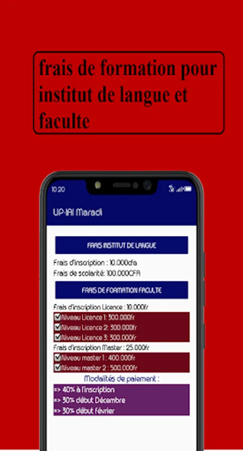 Download our UP-IAI Maradi mobile application to have all of our information, in particular: