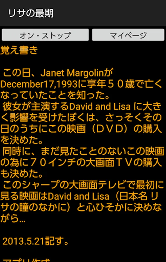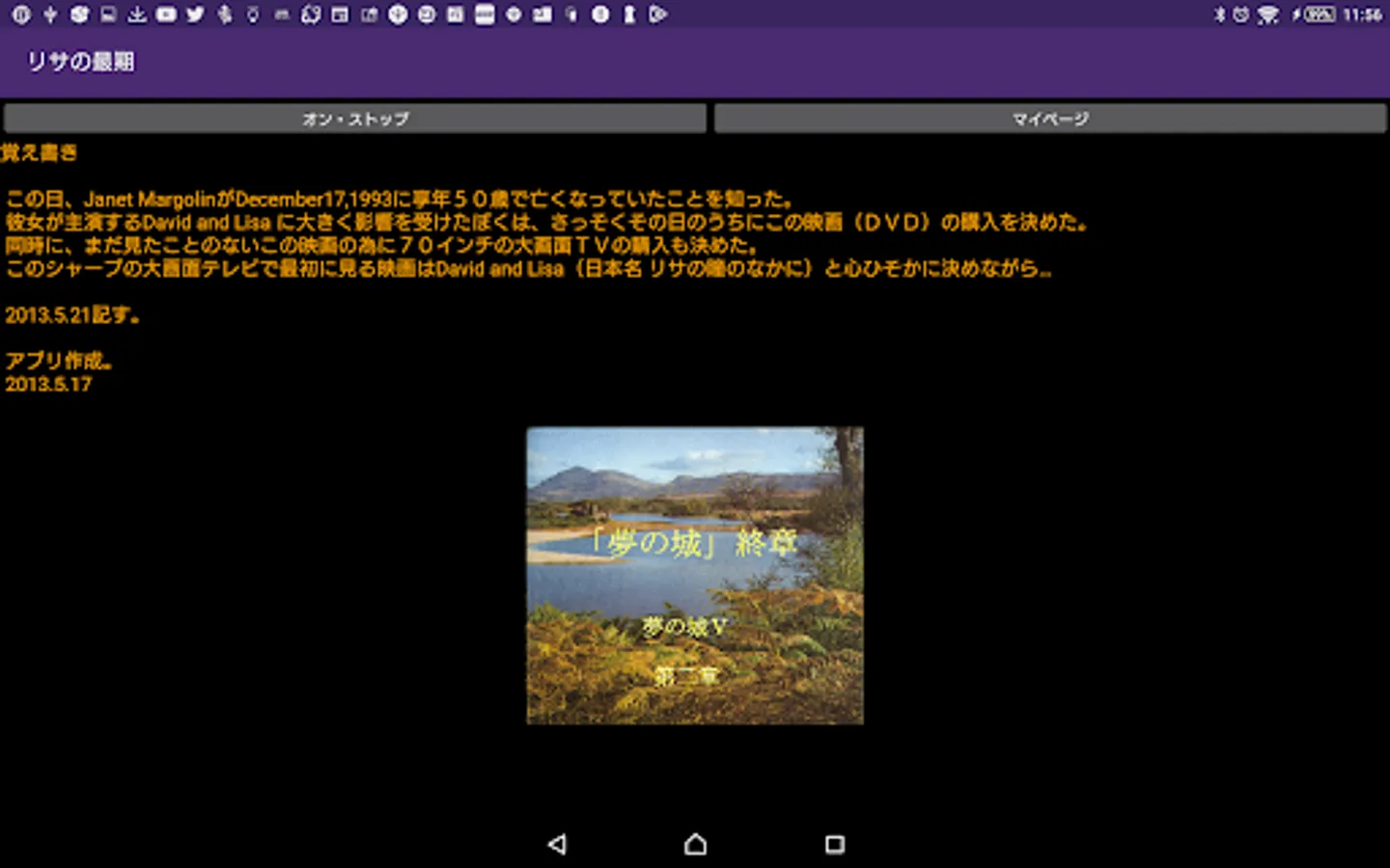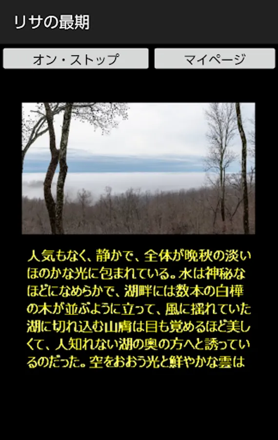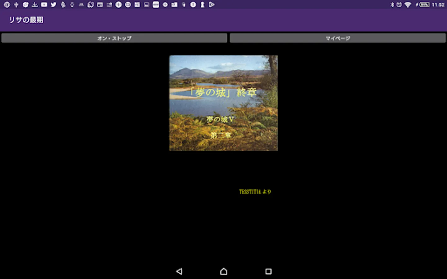 This app allows you to enjoy reading the last part of the feature-length novel by pressing the on / stop button. This application basically does not require the introduction of the reading application N2 TTS, but it is also a specification that supports N2 TTS only when the title that occurs when this application is started is read aloud, so I would like to enjoy the reading itself including that. For those who want to download the N2 TTS app.