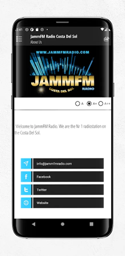 Welcome to JammFM Radio. We are the Nr 1 radiostation on the Costa Del Sol.