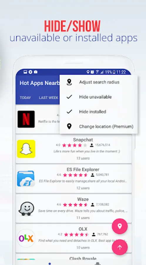 • Premium: Instead of scanning only nearby locations, you can view apps by their worldwide popularity.