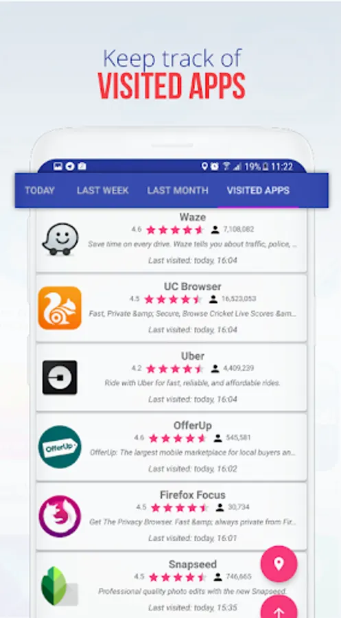 • Premium: Forgot the name of an app you visited before? Keep track of the apps you visit on the "Visited apps" tab.