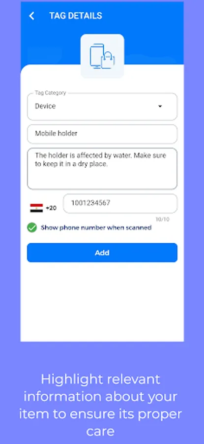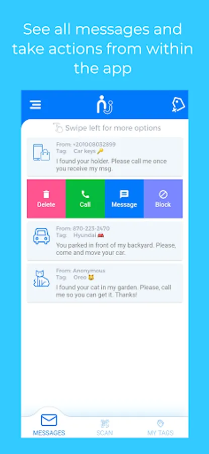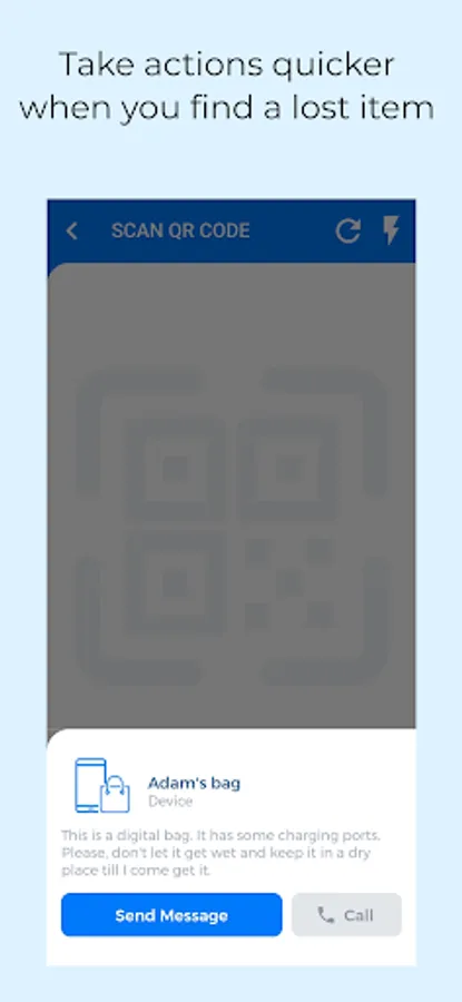 The person who finds that item can scan it and reach the owner through messages or by calling the owner directly.