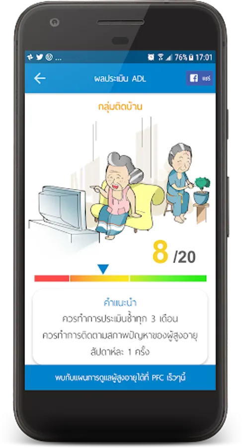 Fighting discrimination by age groups, the elderly, the display immediately evaluate the ease of use in individuals aged care to use it. Seniors can also take a self-assessment to allow your loved ones to be evaluated. So that the elderly are organized in groups that have received special treatment or not.