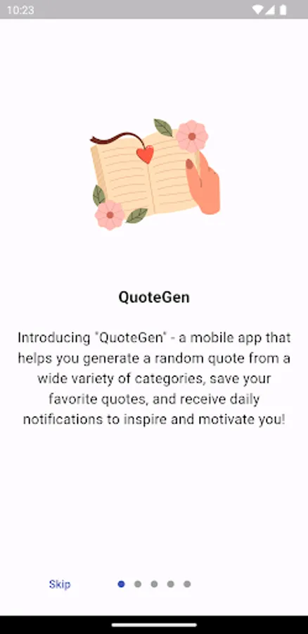 Introducing "QuoteGen" - a mobile app that helps you generate a random quote from a wide variety of categories, save your favorite quotes, and receive daily notifications to inspire and motivate you!