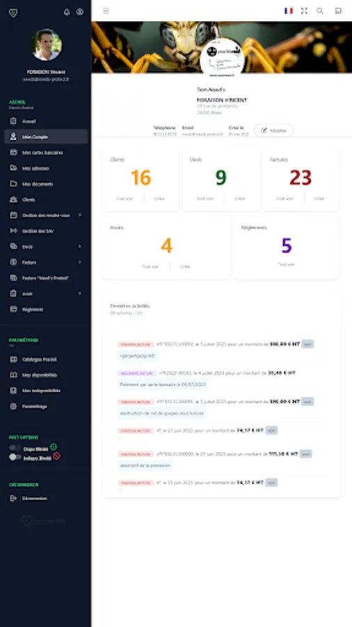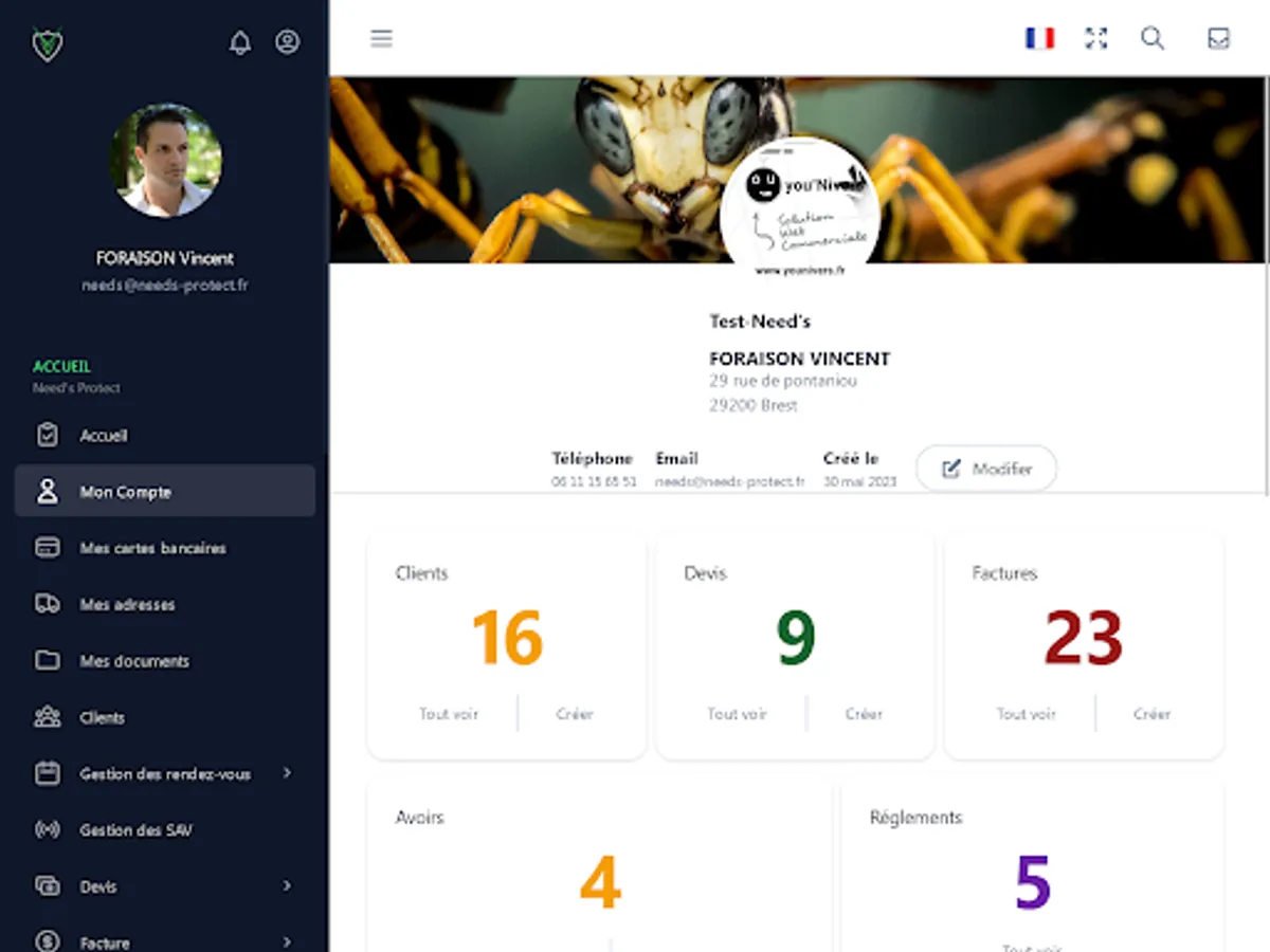 Application reserved for pest control professionals. An application that allows the technician to have a management tool for everything related to the destruction of wasp nests and hornet nests. Need's Protect, we are business introducers in disinsectization, do not hesitate to contact us for more information and join our network of freelancers. We bring you qualified appointments. We bring together freelancers of pest control by sending them qualified appointments. The application also allows you to have billing software, management of your schedule, management of your customers and above all the total management of your geo-localized appointments.