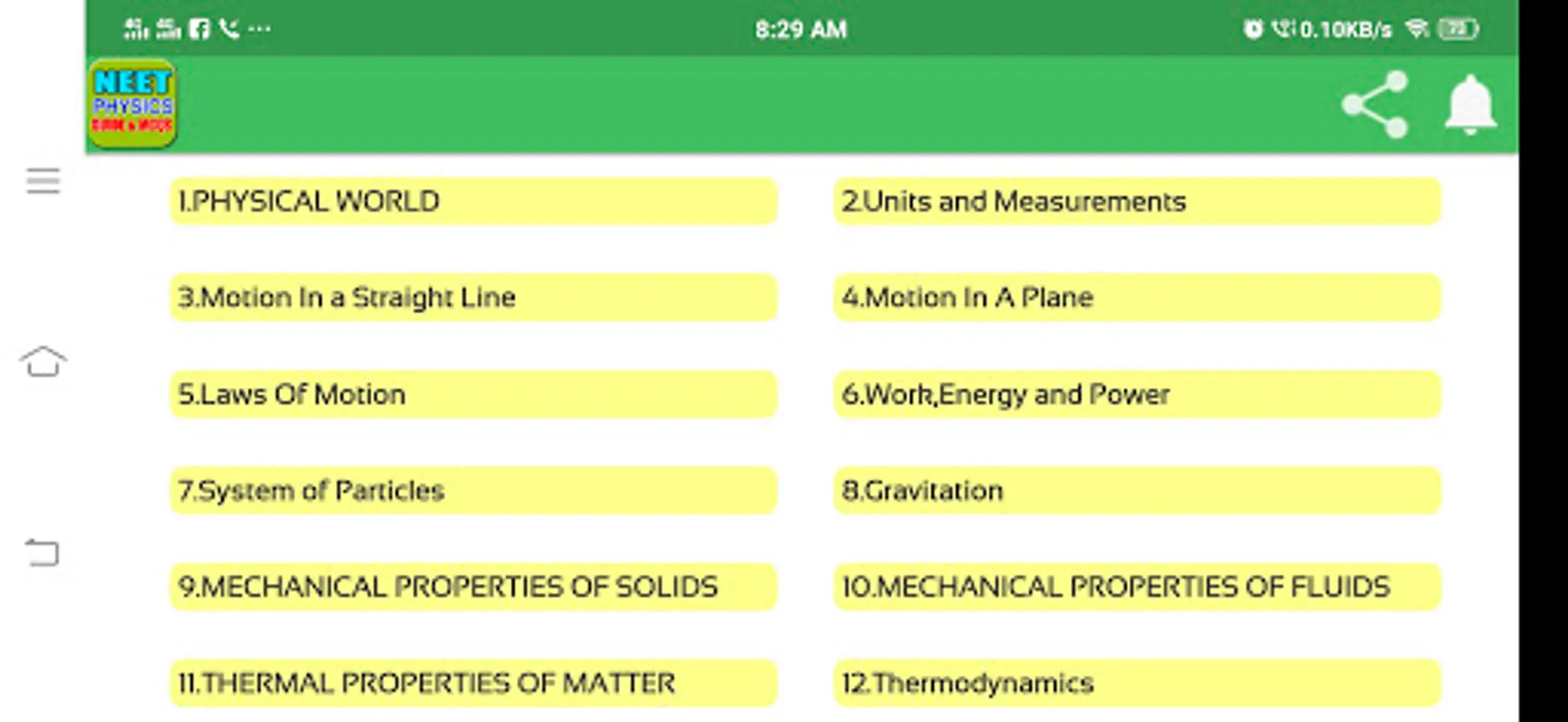 Physics Chapter wise 33 years NEET Previous years MCQS with solutions also given in this app.