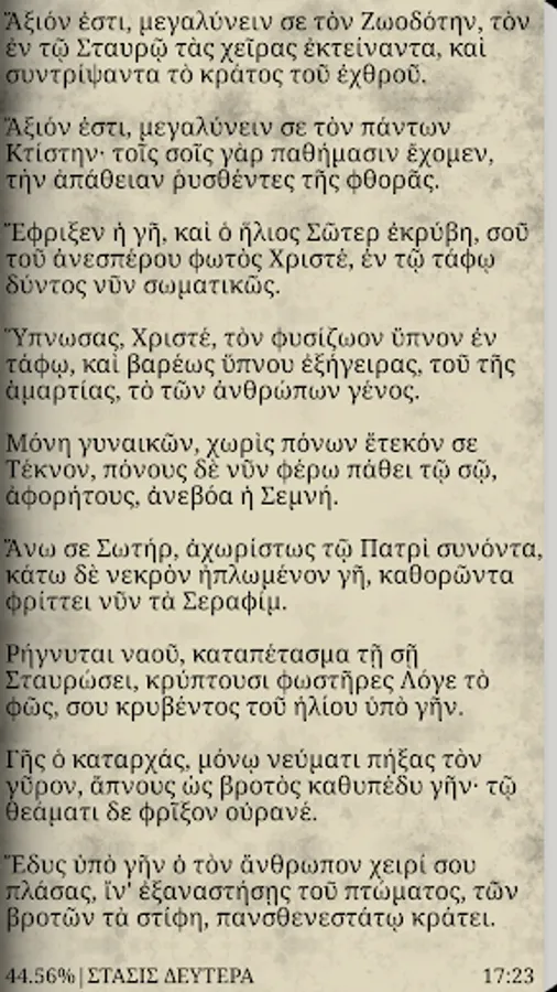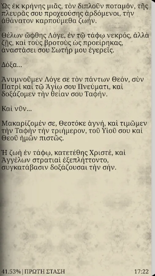 This application is an e-book with praise of Lamentations which are sung on the evening of Good Friday, in the temples, just before the funeral procession of the epitaph, where some of them and repeated in the pronunciation. This book includes the three stops of the Psalms.