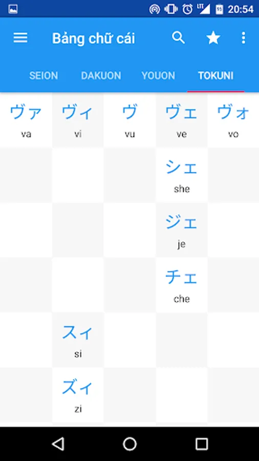 ∴Bang chu cai Hiragana, Katakana, Ki tu dac biet