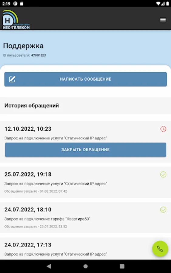 "Neo-Telecom" is a free application from the Internet provider "OOO Neo-Telecom" - an intuitive and convenient assistant for the company's subscribers. All the functions of a personal account that are familiar to you are present here. The mobile application allows: