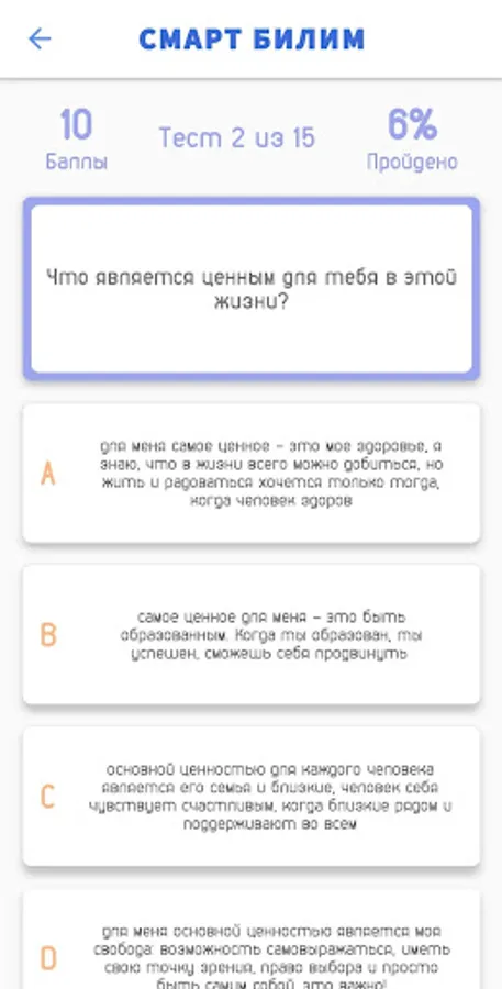 Привет! Ты в нашей игре SMART BILIM. Значит, готов погрузиться в процесс самопознания, анализировать свое поведение, отношение и взгляды на себя и свою жизнь, как изнутри, так и снаружи!