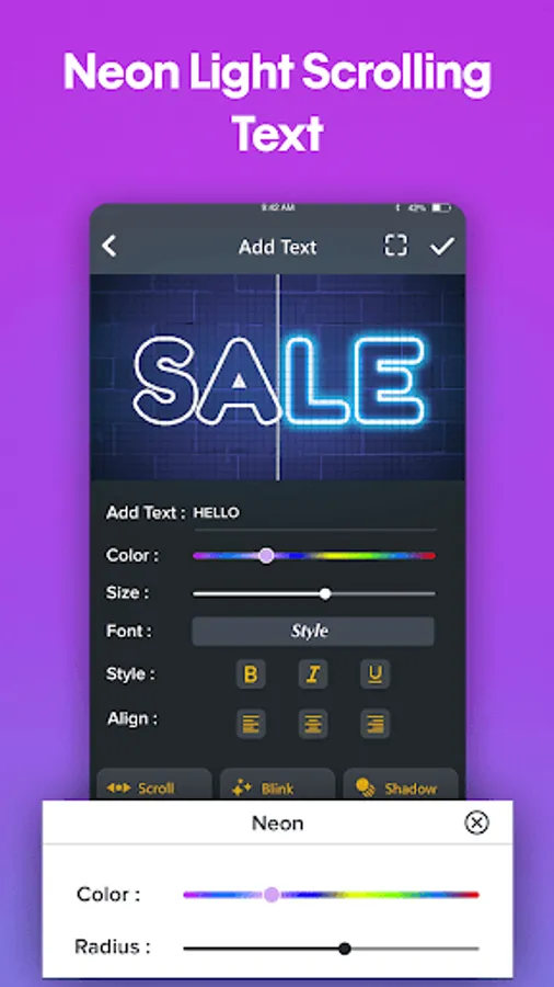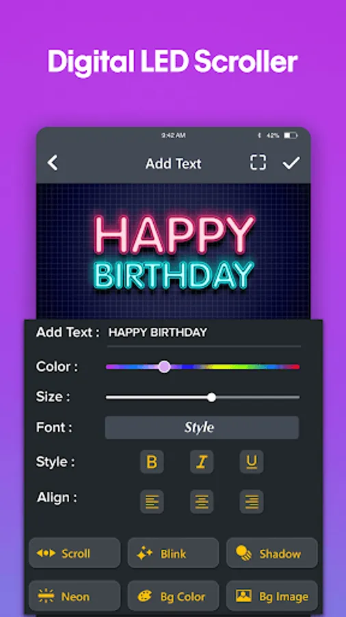 Download the app and use it to create the fancy board neon lights scrolling text banner for indoor-outdoor advertisements.