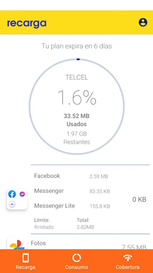 - Recarga App weighs only 3MB, approximately equivalent to 3 selfies.