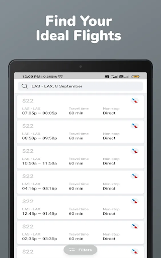 You can search and compare various flight booking websites and choose the best flight airticket at a cheap rate. Our app provides you with filter options in which you can filter your flight according to the arrival price of airticket, time of trips, departure time of flights, source and destination airports, and types of airways.