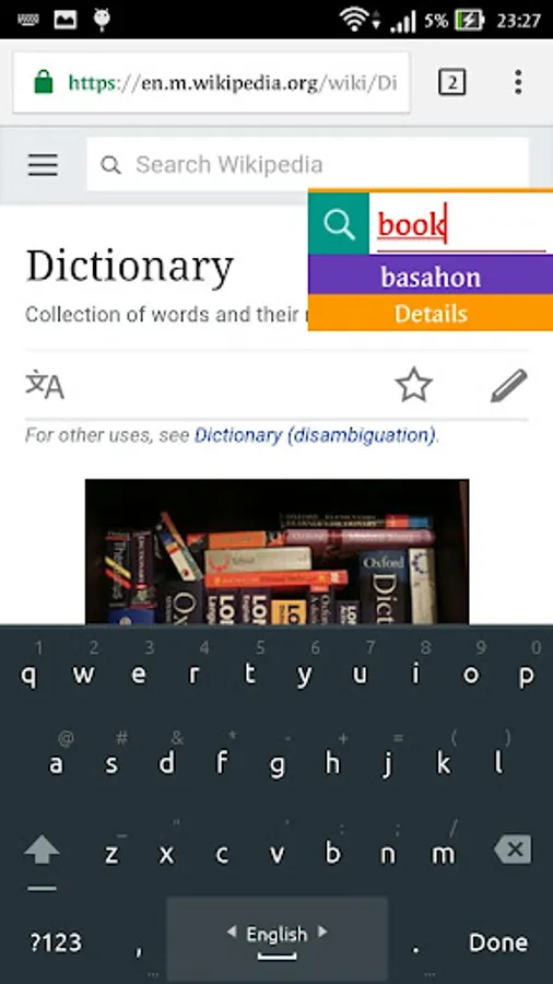 • Mini Dictionary ( You can bring this dictionary into pdf reader , browser or any other apps as screenshot no. 3)