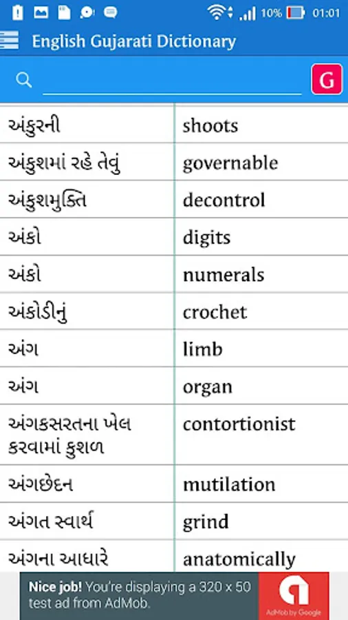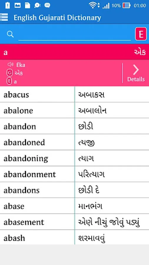 English <> Gujarati Bi-directional Dictionary. You can use this offline dictionary as learning tool. Browse words like a real dictionary, search in English and Gujarati, Words by category.